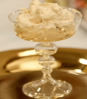 Bata 3 pacotes de natas (convém estar bem frios) e quando estiveram quase em chantilly acrescente uma lata de leite condensado cozido.